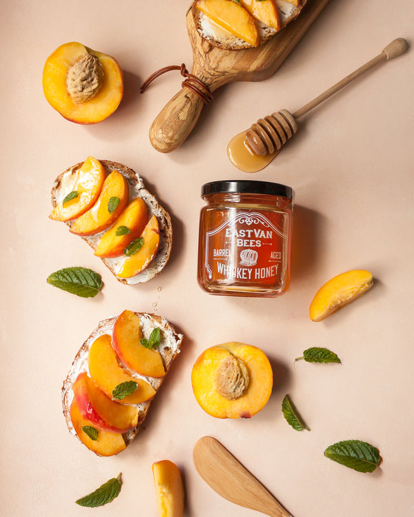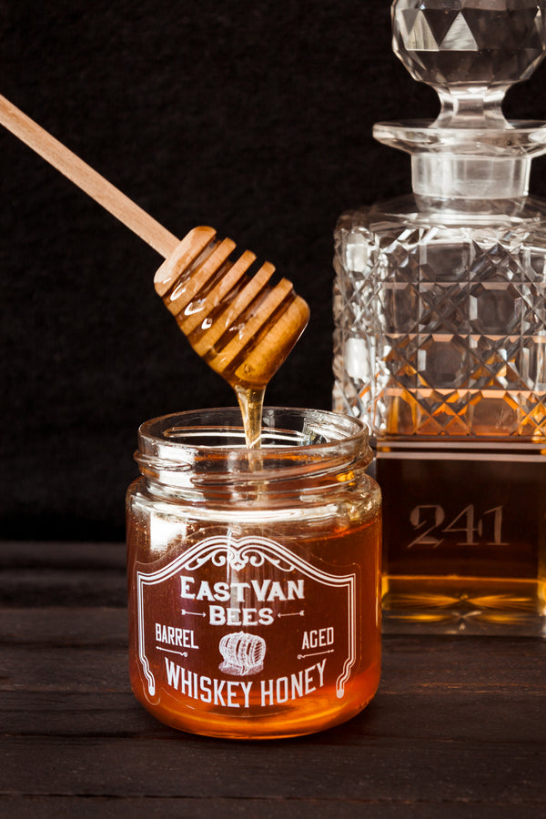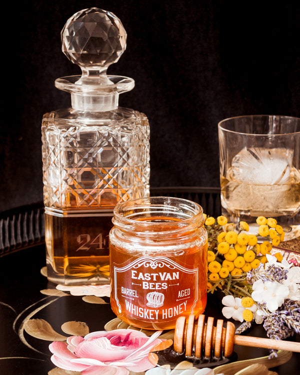 We take our honey and infuse the flavours from an oak barrel from our friends at Sons of Vancouver Distillery that until recently had whiskey aging in it for 3 years. The smoke, pine, oak and whiskey flavours from the barrel are infused into the honey slowly over a few months, for flavour notes, unlike anything you have ever tasted.