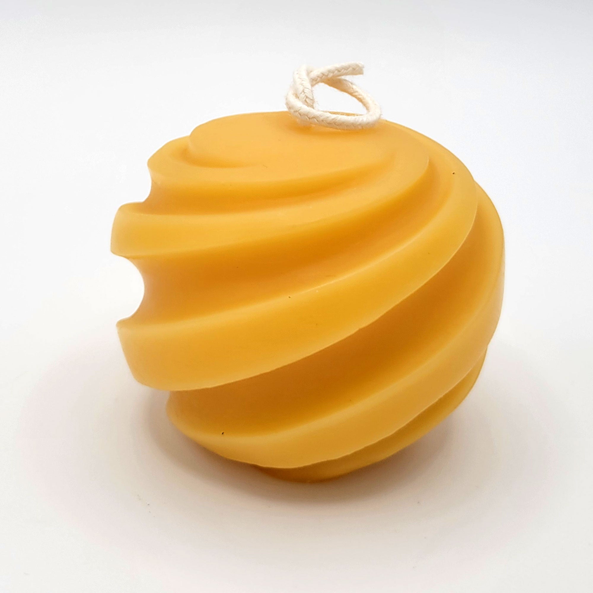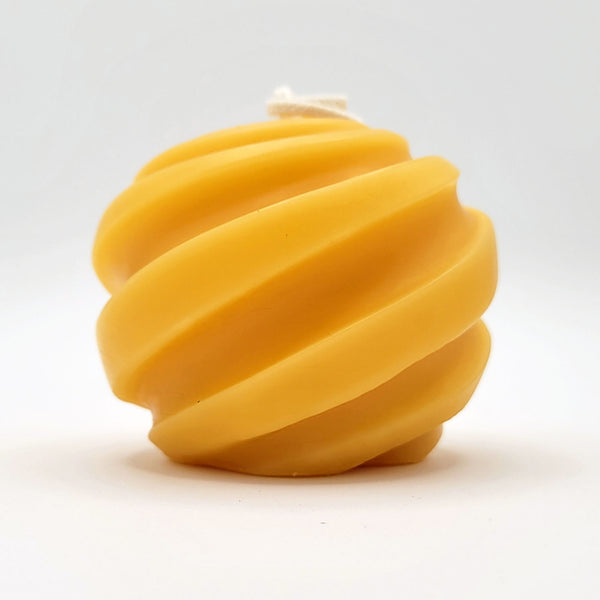 Add a sculptural touch to your space with our Drift Beeswax Candle — a hand-poured sphere of golden beeswax, twisted into a soft spiral form. Its smooth curves catch the light beautifully, even before it's lit. Made from 100% pure beeswax with a natural cotton wick, it burns cleanly with a subtle, honeyed scent.